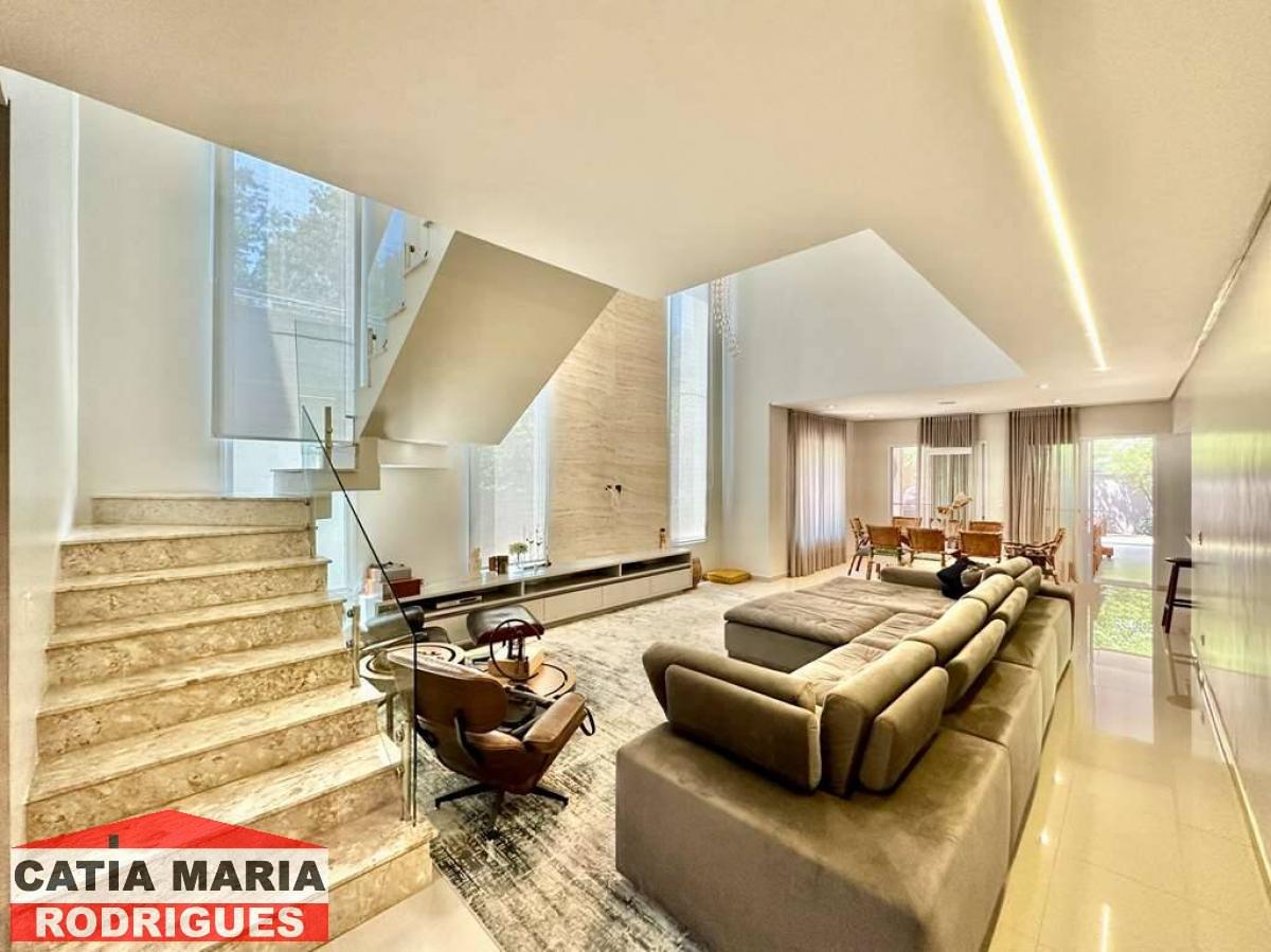 Casa Moderna com lindo projeto arquitetônico e de decoração, excelente iluminação natural, amplo living integrado com pé direito alto, para 4 ambientes, estar, TV, jantar e bar, ar-condicionado, lavabo, escritório, repleta de armários, 5 suítes planejadas com armários, gavetas e painéis para TV, 4 suítes com ar-condicionado Samsung , 4 suítes no piso superior, 2 com terraços integrados e guarda corpo de vidro e 1ste no térreo com acessibilidade, ideal para hóspedes, central com infraestrutura para rede e segurança, com câmeras e alarme, Cozinha planejada, integrada ao living e varanda gourmet, com balcão para sala de jantar, tampos em granito, fogão cooktop 5 bocas Electro Lux e 2 cubas inox, varanda gourmet com ventilador, integrada ao SPA, orquidário e redário, com churrasqueira, coifa inox, cuba inox, torneira gourmet, ilha com balcão para 3 banquetas e mesa de madeira rústica para 8 pessoas, vestiário, SPA com Hidro Ouro Fino para 6 pessoas, com cromoterapia, ozônio e cascata, espelho d’água no jardim lateral, depósito, garagem para 11 vagas sendo 3 cobertas. Documentação ok para financiamento bancário.