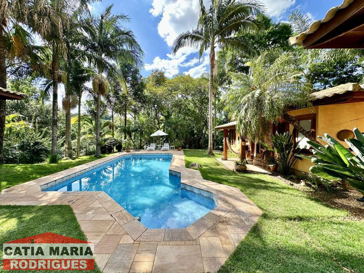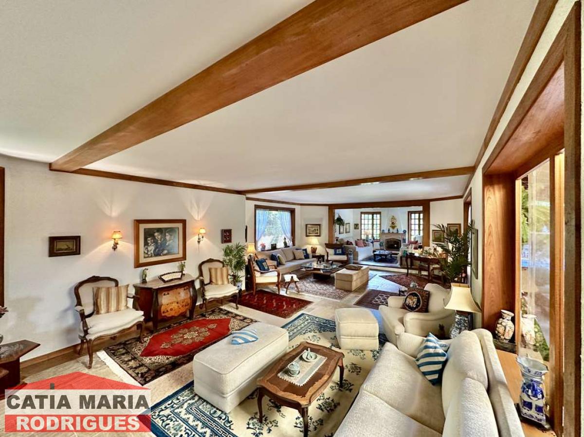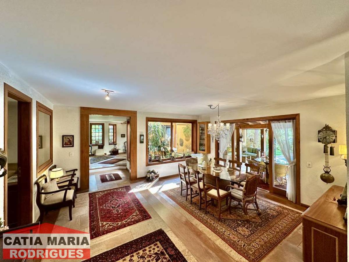 Casa com muita privacidade, integrada a natureza, com ótima localização, 02 escritórios, repleta de armários, madeiramento todo em Freijó: Pisos, portas, janelas, portas balcão e venezianas, projeto de iluminação, hall de entrada social por uma porta dupla, lavabo, living amplo para 6 ambientes em 2 alas integradas, estar, lareira, música, jogos, bar e sala de jantar para 8 cadeiras, varanda, family room ideal para home theater /TV, cozinha com despensa, área de serviço, dependência de funcionários, 02 roupeiros, 04 suítes com terraços, sendo 02 suítes no térreo, varanda gourmet integrada ao jardim e piscina, com churrasqueira, garagem: 2 vagas cobertas. Aquecimento: Boiler Elétrico 400 litros, abastecimento de água: Sabesp, armazenamento: 2.400 litros (2 caixas de 1 mil litros + boiler), sem interesse em permuta.