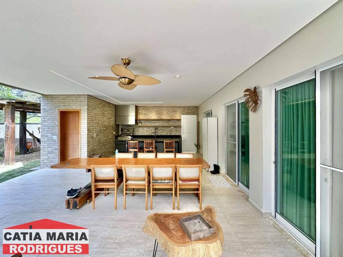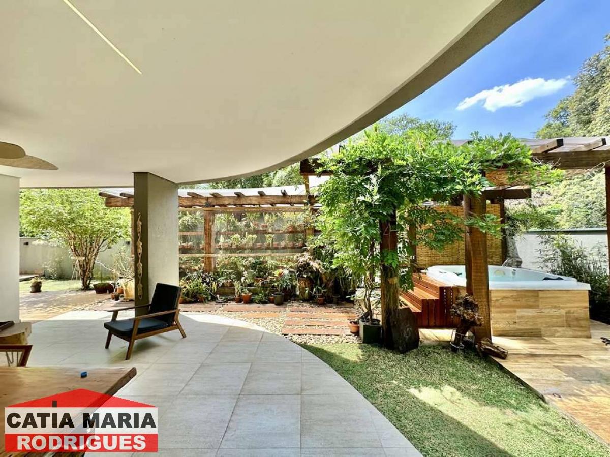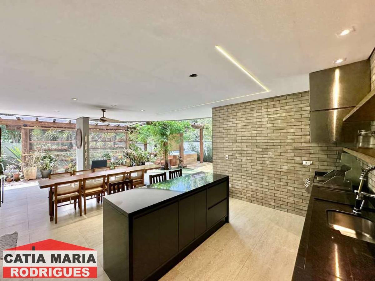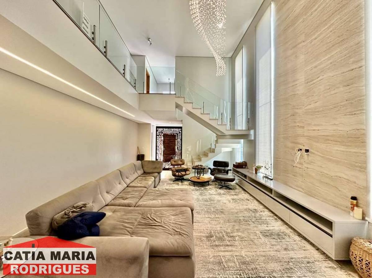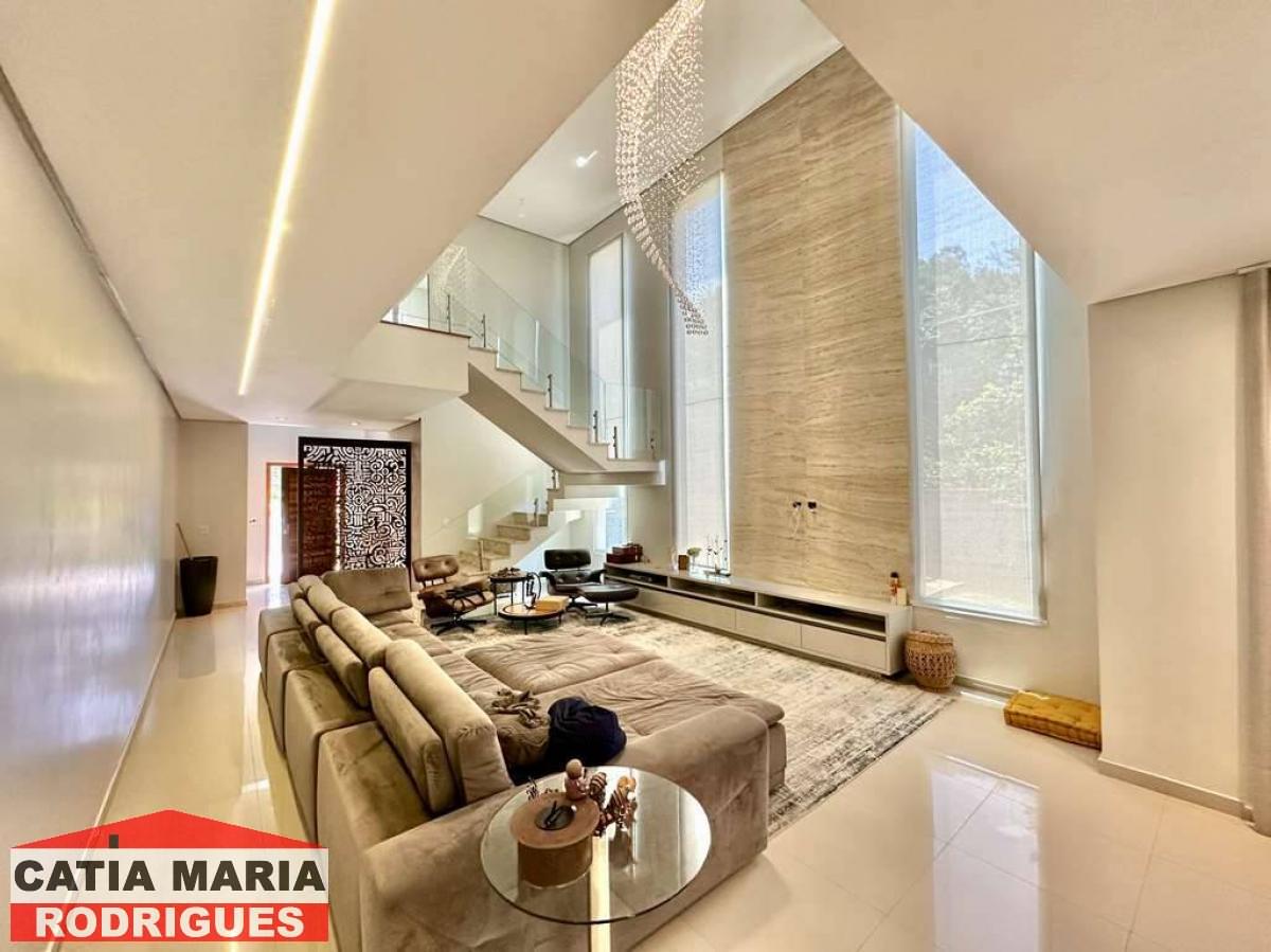 Casa Moderna com lindo projeto arquitetônico e de decoração, excelente iluminação natural, amplo living integrado com pé direito alto, para 4 ambientes, estar, TV, jantar e bar, ar-condicionado, lavabo, escritório, repleta de armários, 5 suítes planejadas com armários, gavetas e painéis para TV, 4 suítes com ar-condicionado Samsung , 4 suítes no piso superior, 2 com terraços integrados e guarda corpo de vidro e 1ste no térreo com acessibilidade, ideal para hóspedes, central com infraestrutura para rede e segurança, com câmeras e alarme, Cozinha planejada, integrada ao living e varanda gourmet, com balcão para sala de jantar, tampos em granito, fogão cooktop 5 bocas Electro Lux e 2 cubas inox, varanda gourmet com ventilador, integrada ao SPA, orquidário e redário, com churrasqueira, coifa inox, cuba inox, torneira gourmet, ilha com balcão para 3 banquetas e mesa de madeira rústica para 8 pessoas, vestiário, SPA com Hidro Ouro Fino para 6 pessoas, com cromoterapia, ozônio e cascata, espelho d’água no jardim lateral, depósito, garagem para 11 vagas sendo 3 cobertas. Documentação ok para financiamento bancário.